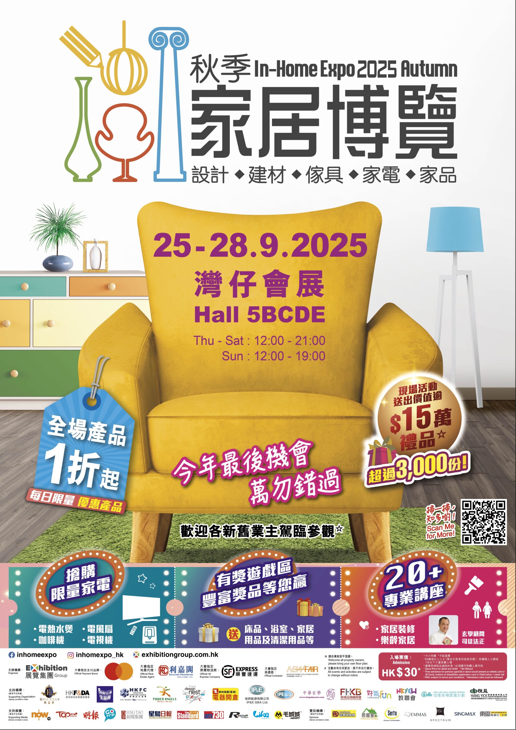 29/05/2025 - 01/06/2025 香港家居博覽 2025 香港會議展覽中心Hall 1 香港會議展覽中心Hall 1 展覽地點:香港會議展覽中心Hall 1 (會展站B3或灣仔站 […] Free
